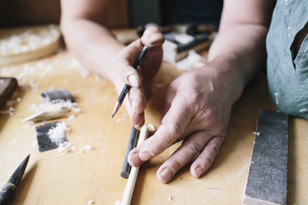 Anfertigen von Holzpfeilen mit Naturbefiederung, passend zum Bogenschützen und Bogen unter Berücksichtigung von Spinewert und Auszugslänge.